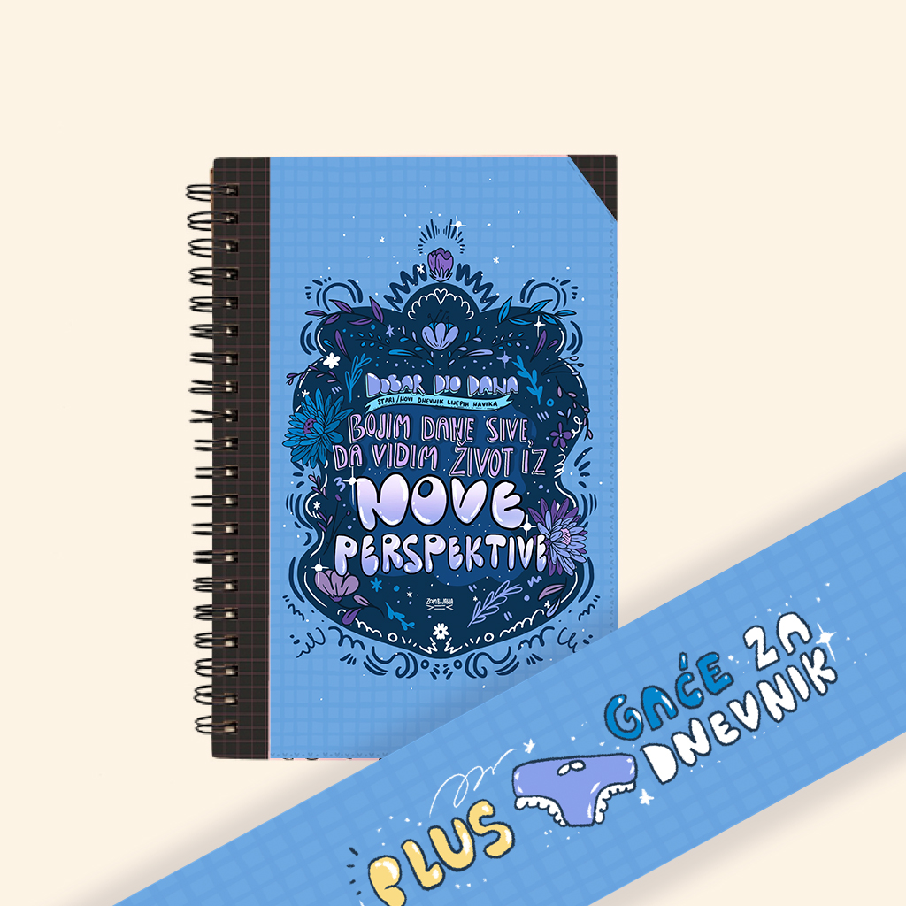 Dnevnik je nedatumiran, te možete da počnete vođenje istog kad god. Uz ovu verziju dođu ‘gaće za dnevnik’. U pitanju su vodootporni stikeri koje možete i ne morate da prelijepite preko korica, za slučaj da želite novi izgled za 2026 godinu. U kutiji takođe dođe i ukras za spiralu, kao i mini bookmarker.