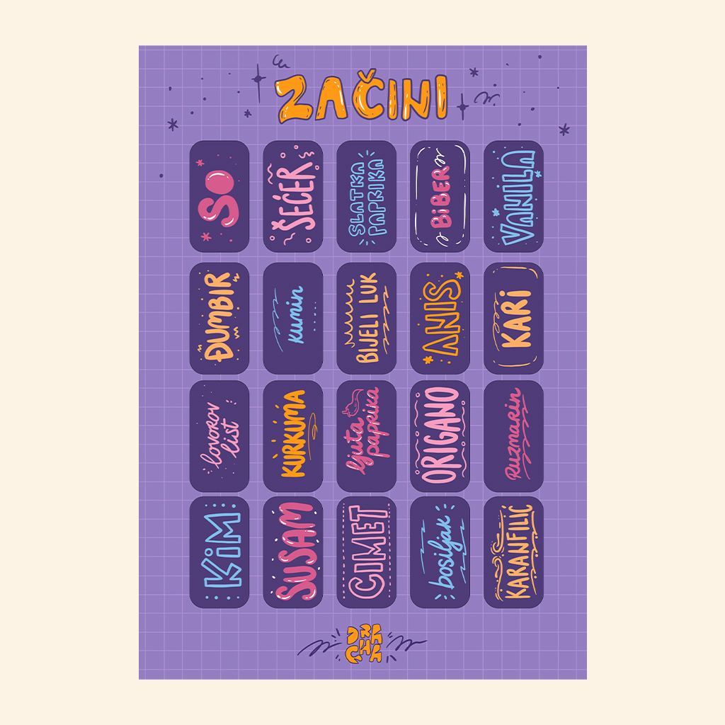 Kombinovani list sa više naljepnica, ilustracije by Zombijana.